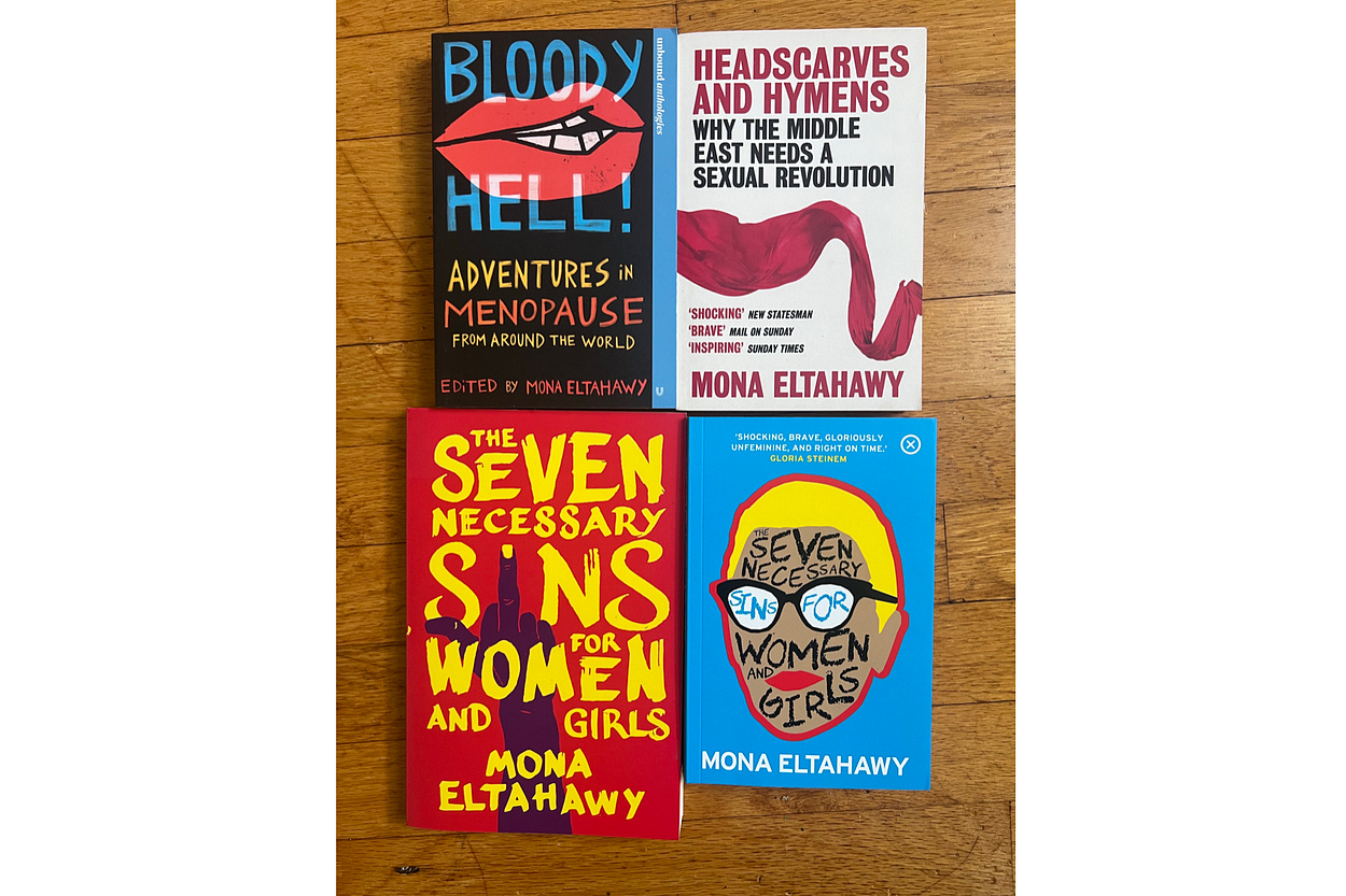 Clockwise from top left: Bloody Hell!, Headscarves and Hymens (UK edition), The Seven Necessary Sins for Women and Girls (Ireland and UK edition), The…
