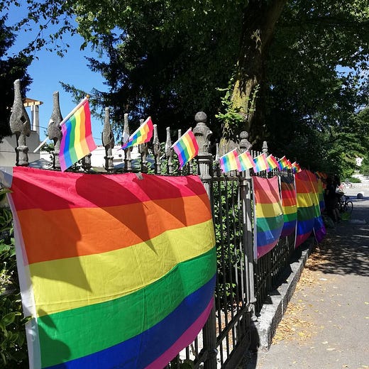 Slovenian LGBT+ activists proudly displayed a variety of Pride flags to welcome the prime ministers of Hungary and Poland during their visit to the country. (Twitter/@RemyBonny) (Pink News)